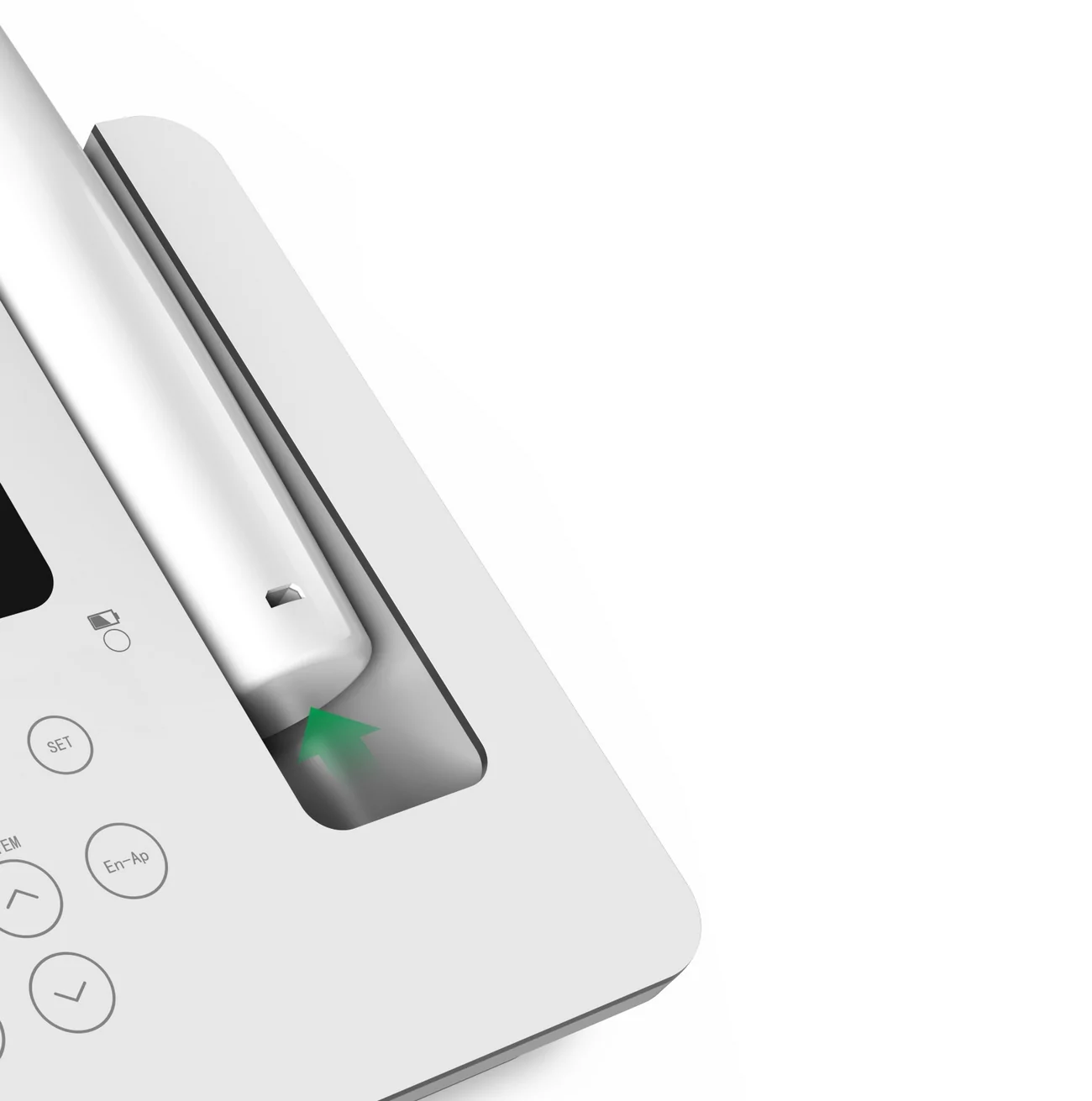 Режим апекслокатора можно использовать отдельно, нажав кнопку «En-Ap». После того, как файлодержатель, измерительный провод и загубник установлены, стандартный протокол эндодонтического осмотра производится путём погружения файла в корневой канал, чтобы точно измерить рабочую длину корневого канала.