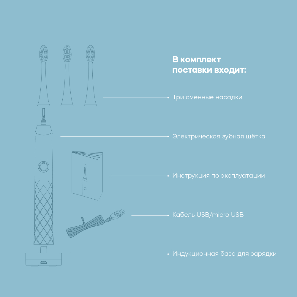 • З режима работы (отбеливание, регулярная чистка, массаж) для достижения наилучшего результата в зависимости от ваших индивидуальных потребностей