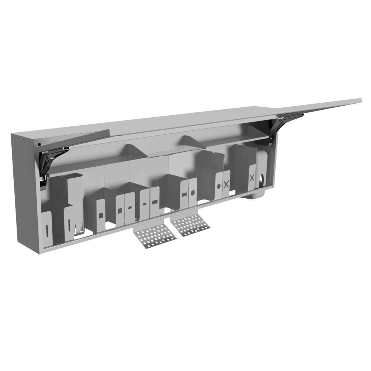 Оснащён восемью съёмными модулями, которые можно заменить, убрать или переставить по вашему усмотрению. Содержимое каждого модуля можно извлечь без открывания дверцы.