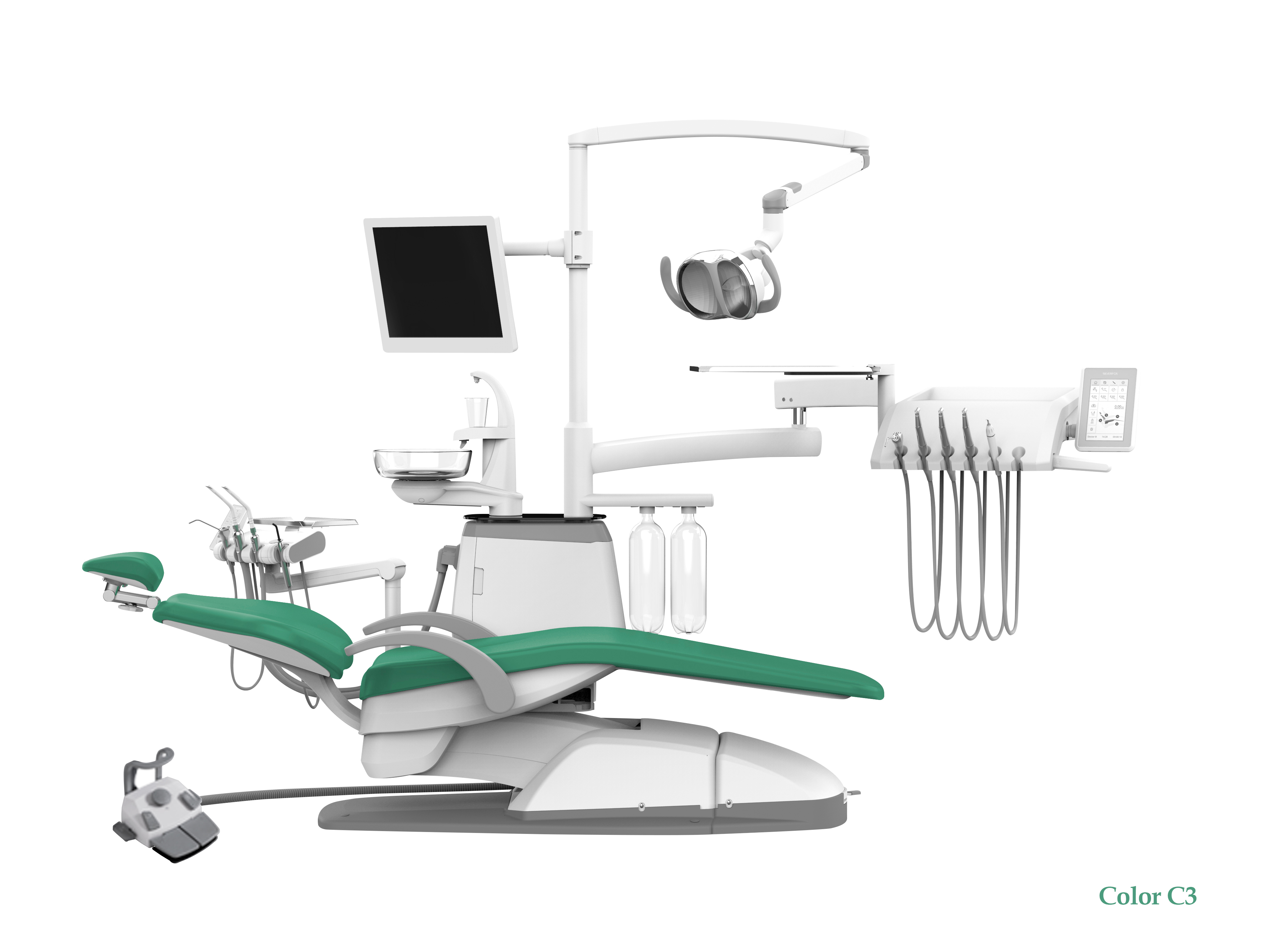 - Управление светильником осуществляется с помощью сенсорной панели на блоке врача, блоке ассистента и педали ножного управления