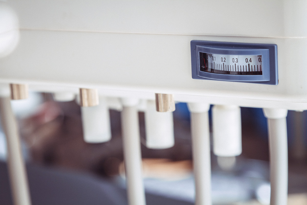 Эргономичный блок врача имеет панель управления креслом и гидроблоком, манометр давления, регулировку подачи воды и воздуха на каждый инструмент.