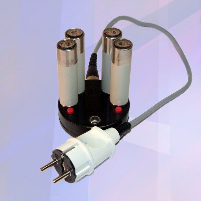 • наличие стационарного зарядного устройства со встроенным цифровым индикатором излучаемой мощности и отображением текущего времени;