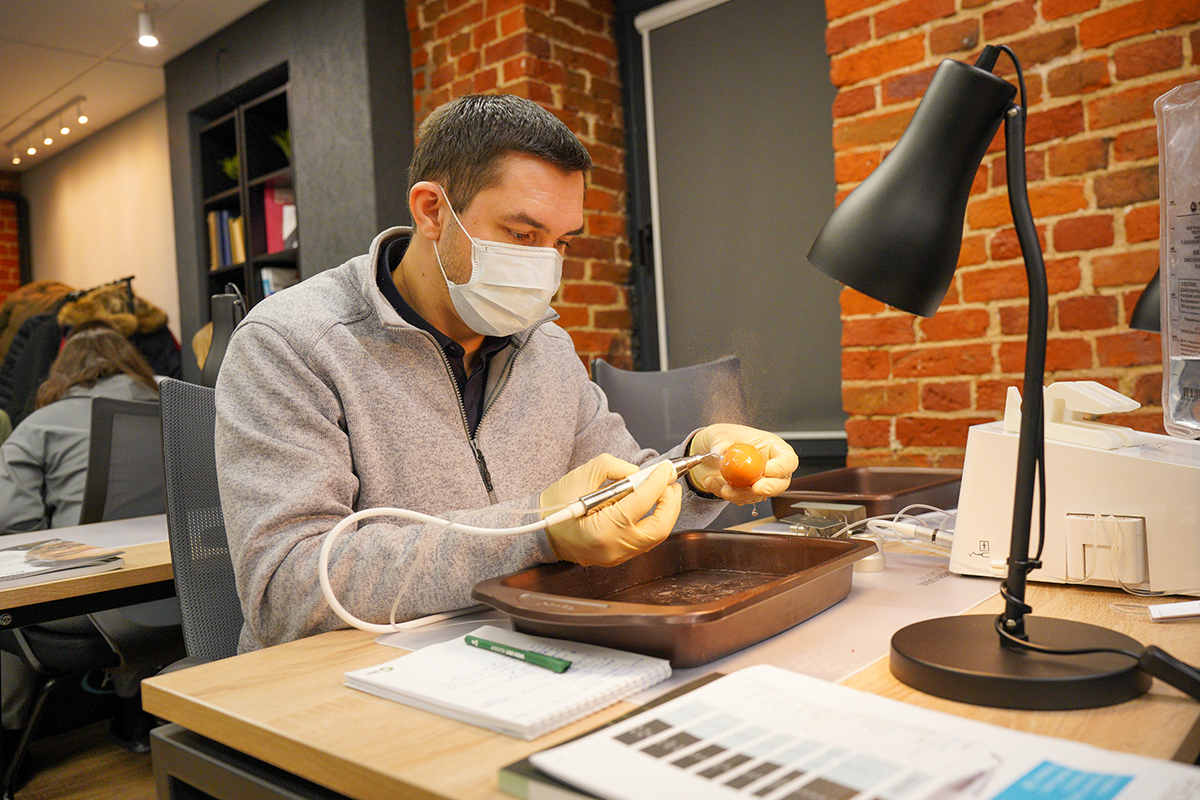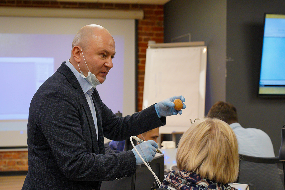 За дверью учебного центра Green Dent Academy слышны интересные вопросы, понятные объяснения лектора и необычный скрежет. Так звучит практический курс по пьезохирургии, на котором глава представительства Acteon в России, Артур Хавари, поделился ценными знаниями и обучил работе на самом мощном ультразвуковом аппарате Piezotome CUBE.